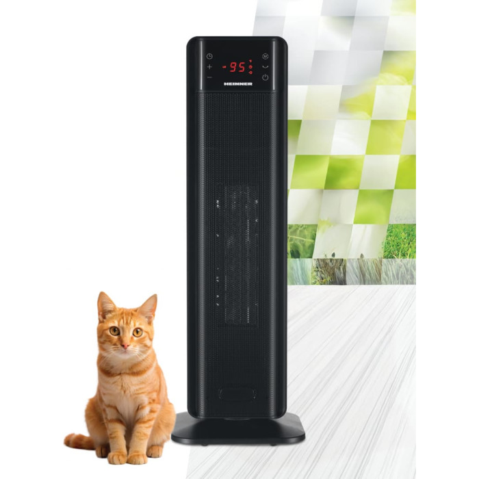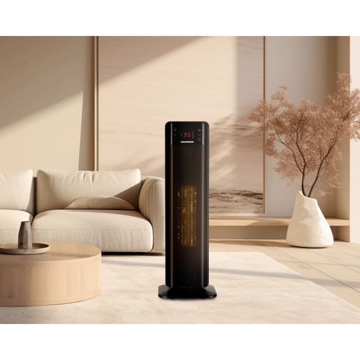 Ceramic radiator Heinner HCHT-MD20BK, power: 1200/2000W, oscillation function, ECO function, LED display, touch control, 24h timer, digital thermostat, PTC heating element, remote control, tip-over protection, over-heating protection, color: black.