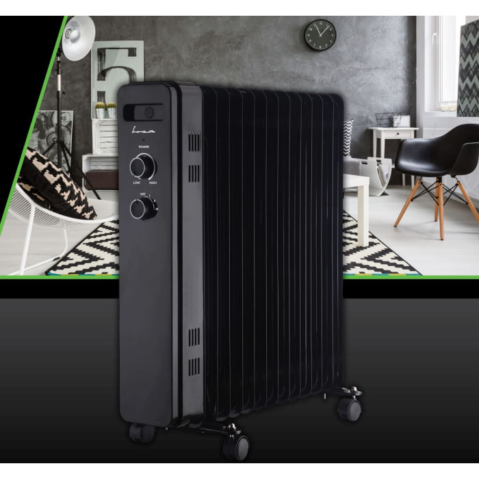 Oil-Filled Radiator Fram FOH-Y13BK, 13 Elements, 2500W, 3 Heat Settings, Adjustable Thermostat, Overheating Protection, Black