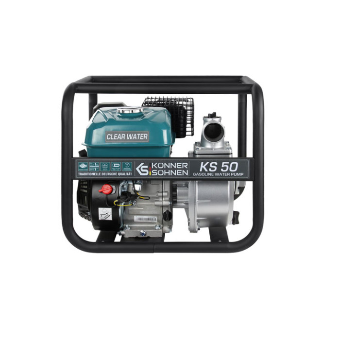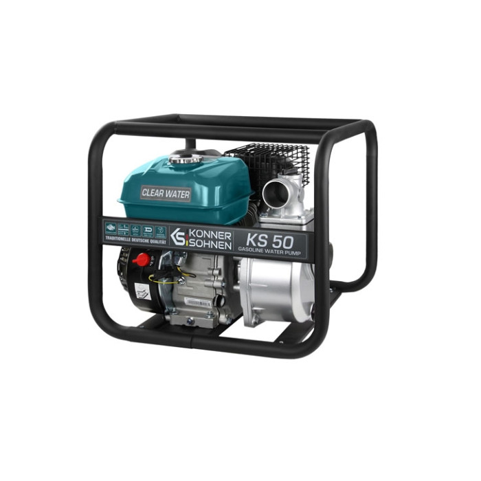 KS 50 water pump is ideal for rural homes, villas, and areas tackling floods. Water pumps for pure water can be used for pumping liquids with particles up to 5-6 mm. Before use, start the engine, let it run for 30 seconds, then stop and add water to improve efficiency.