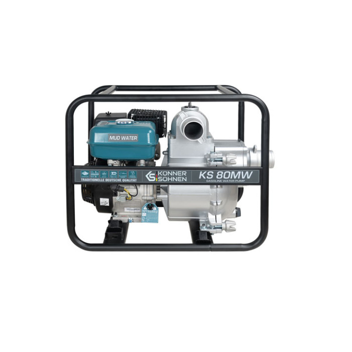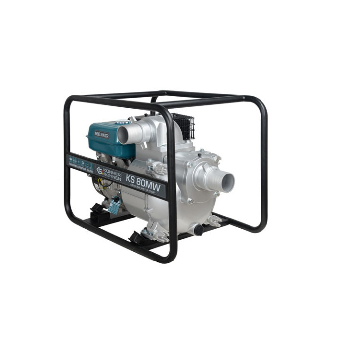 KS 80MW mud pump is suitable for pumping dirt water with up to 50% solid sewerage, сapactiy up to a diameter of 25.4 mm. Before pumping, fill the pump with clean water. After starting the engine, allow the pump to run for about 30 seconds, then stop the engine and add more water to the pump to increase its efficiency and continue working.