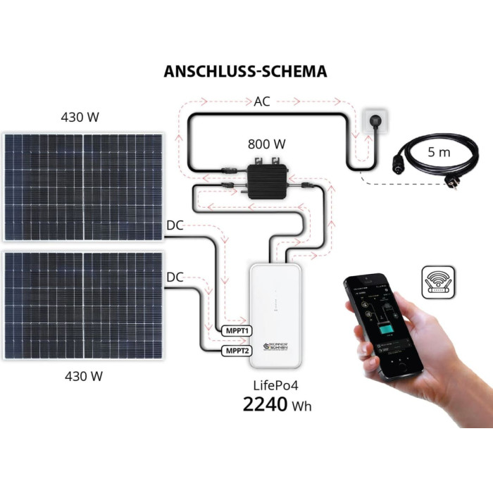 Maximum Power Point Tracking (MPPT) ensures high efficiency, and integrated monitoring via Wi-Fi allows for easy remote control of the device. Improved heat dispersion and easy installation make the microinverter simple and effective to use.
