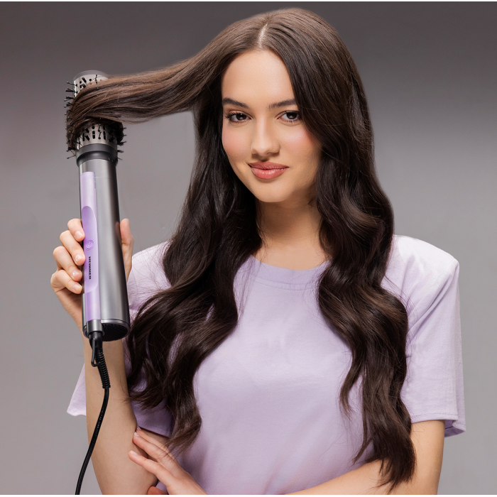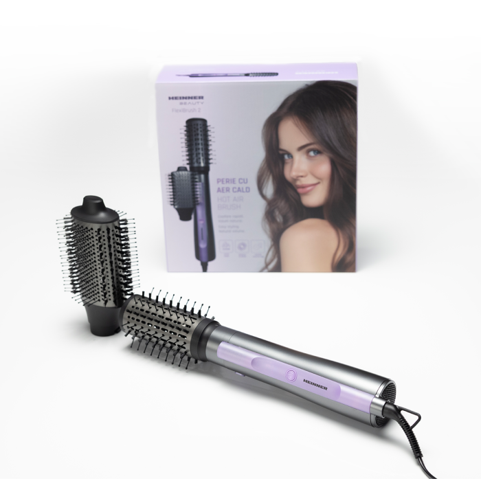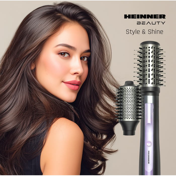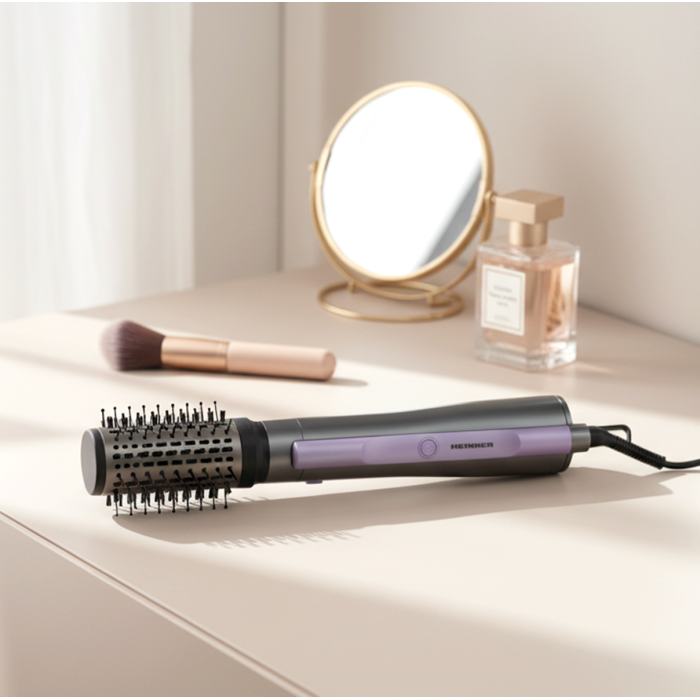 Heinner HAB-Y12DC-GY2 hot air brush with a 1200 W DC motor is designed for easy hair drying and styling. Negative ion technology helps reduce frizz and leaves hair smoother and shinier.