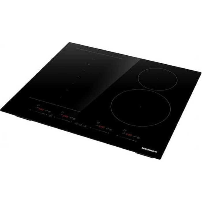 Heinner HBHI-M4ZB1FXSMTC built-in hob, Induction, 4 cooking zones, Bridge, Boost, Slim, Touch control, Timer, Child protection, Residual heat indicator, (W x D): 59 x 52 cm, Black