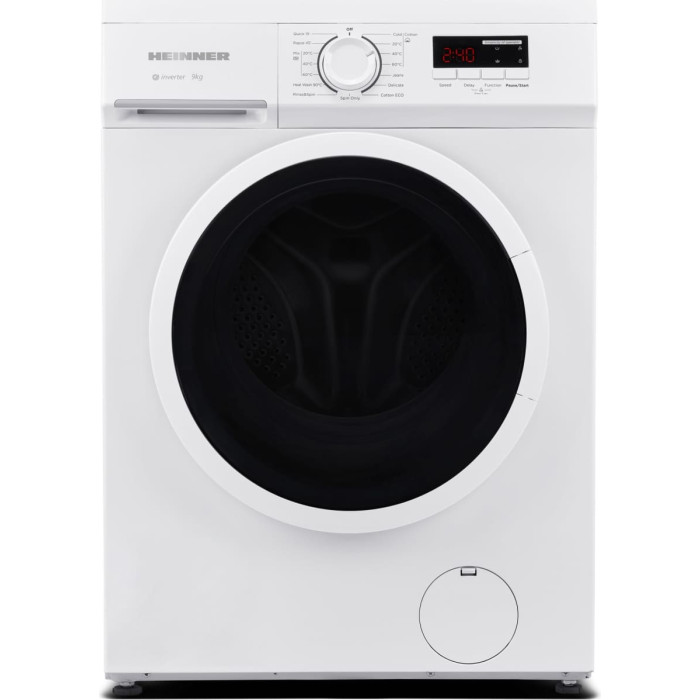 Washing Machine HEINNER HWM-M9014SMA+++, Capacity: 9 kg, Spin Speed: 1400 RPM, Energy Class: A, Inverter Motor, Digital Display, Child Lock, Hygiene Program 90 °C, Dimensions (W × D × H): 59.5 × 56.5 × 85 cm, Color: White