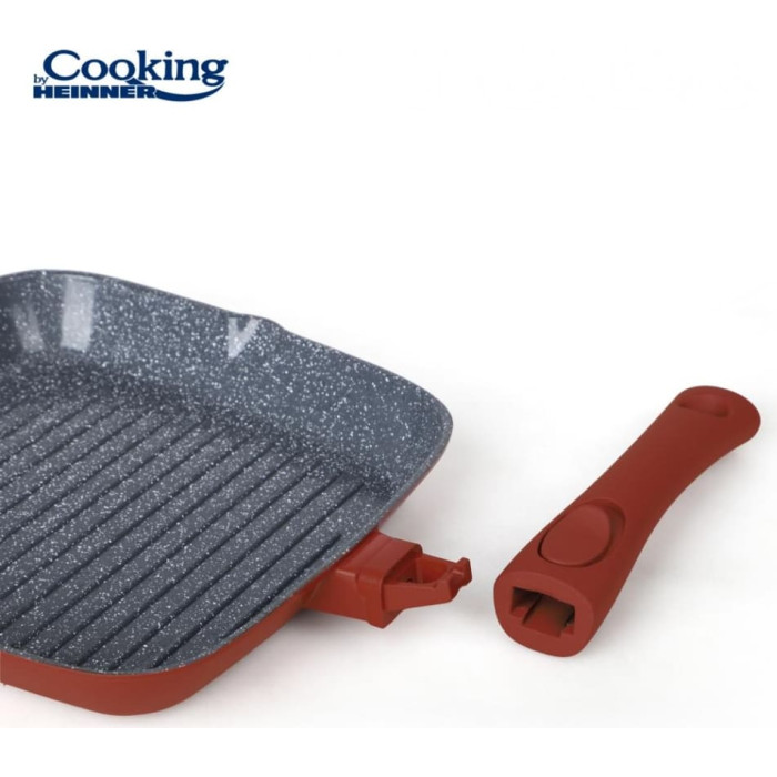 The PFLUON ceramic interior coating with marble effect prevents sticking and allows cooking with less oil. The detachable Soft Touch handle provides comfort, safety, and compact storage. Suitable for all types of hobs, including induction.
