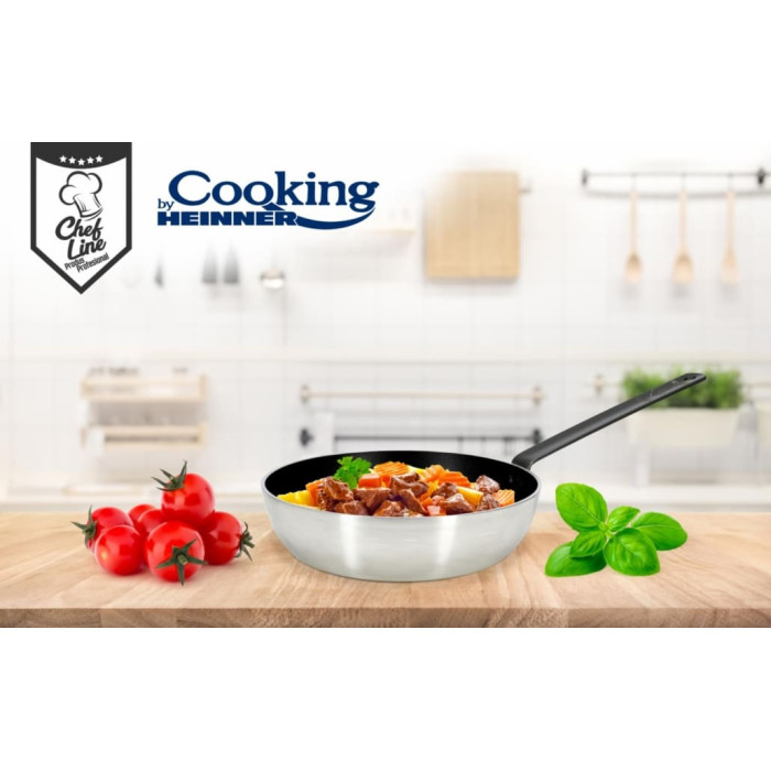 The Heinner Chef Line Professional Wok Pan is designed for high-performance cooking, making it ideal for stir-frying, sautéing, and preparing a wide variety of dishes. Made from pressed aluminum, it ensures fast and even heat distribution, allowing ingredients to cook quickly while retaining their texture and flavor. The durable non-stick interior coating prevents food from sticking and supports healthier cooking with less oil.