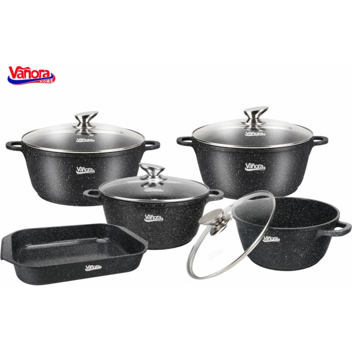 This Classic pot from Vanora Home is made of cast aluminum and features a black non-stick ceramic interior with a marble effect. The solid aluminum body retains heat efficiently, significantly reducing cooking time and energy consumption.