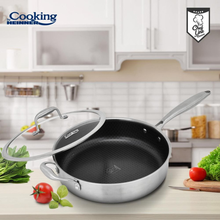 DEEP STAINLESS STEEL FRYING PAN WITH GLASS LID, 3-PLY, 28 x 7.5 CM, 4.2 L, TITANIUM3, COOKING BY HEINNER