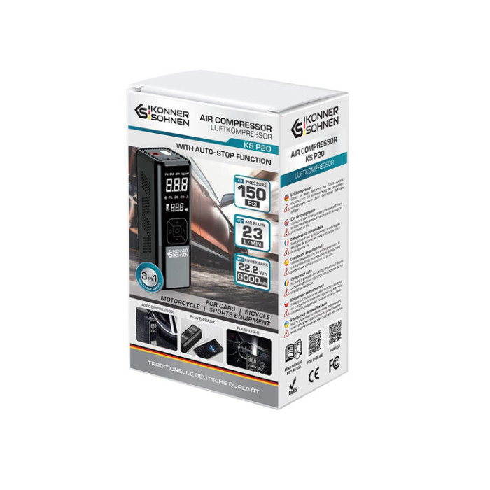 Kompresors / Powerbank 120W, 6Ah, 10,3bar, 23l/min, KS P20, KONNER & SOHNEN