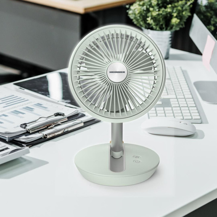 Salokāmais ventilators Heinner HMF-LC4000GR, 5W, 4 ātruma līmeņi, 4000mAh akumulators, digitālā vadība, augstums 29 cm, zaļš