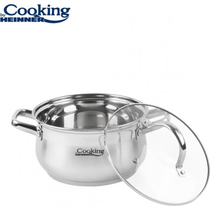 NERŪSĒJOŠĀ TĒRAUDA KATLS AR NEPIEDEGOŠU PĀRKLĀJUMU UN STIKLA VĀKU, 18 x 10.5 CM, 2.6 L, AMIRA, COOKING BY HEINNER