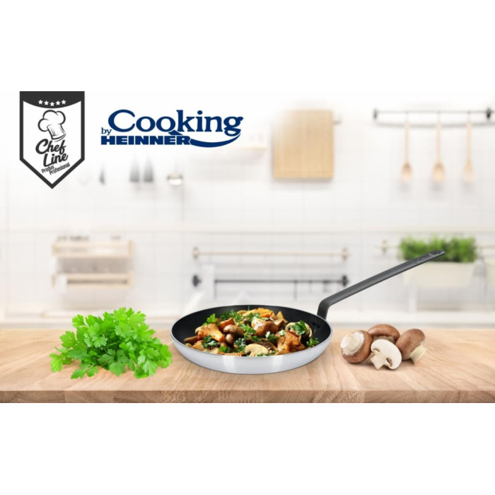Heinner Chef Line profesionālā panna ir paredzēta augstai veiktspējai gan mājas, gan profesionālās virtuvēs. Tā ir izgatavota no presēta alumīnija, kas nodrošina ātru un vienmērīgu siltuma sadali, ļaujot precīzi kontrolēt gatavošanas procesu. Nepiedegošais iekšējais pārklājums novērš ēdiena pielipšanu un atvieglo pannas tīrīšanu pēc lietošanas.