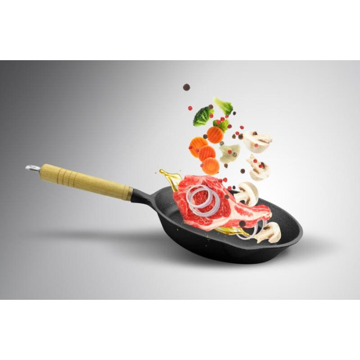 TĪRA ČUGUNA PANNA AR KOKA ROKTURI 23 x 4 CM, KRĀSAINA KASTE, COOKING BY HEINNER